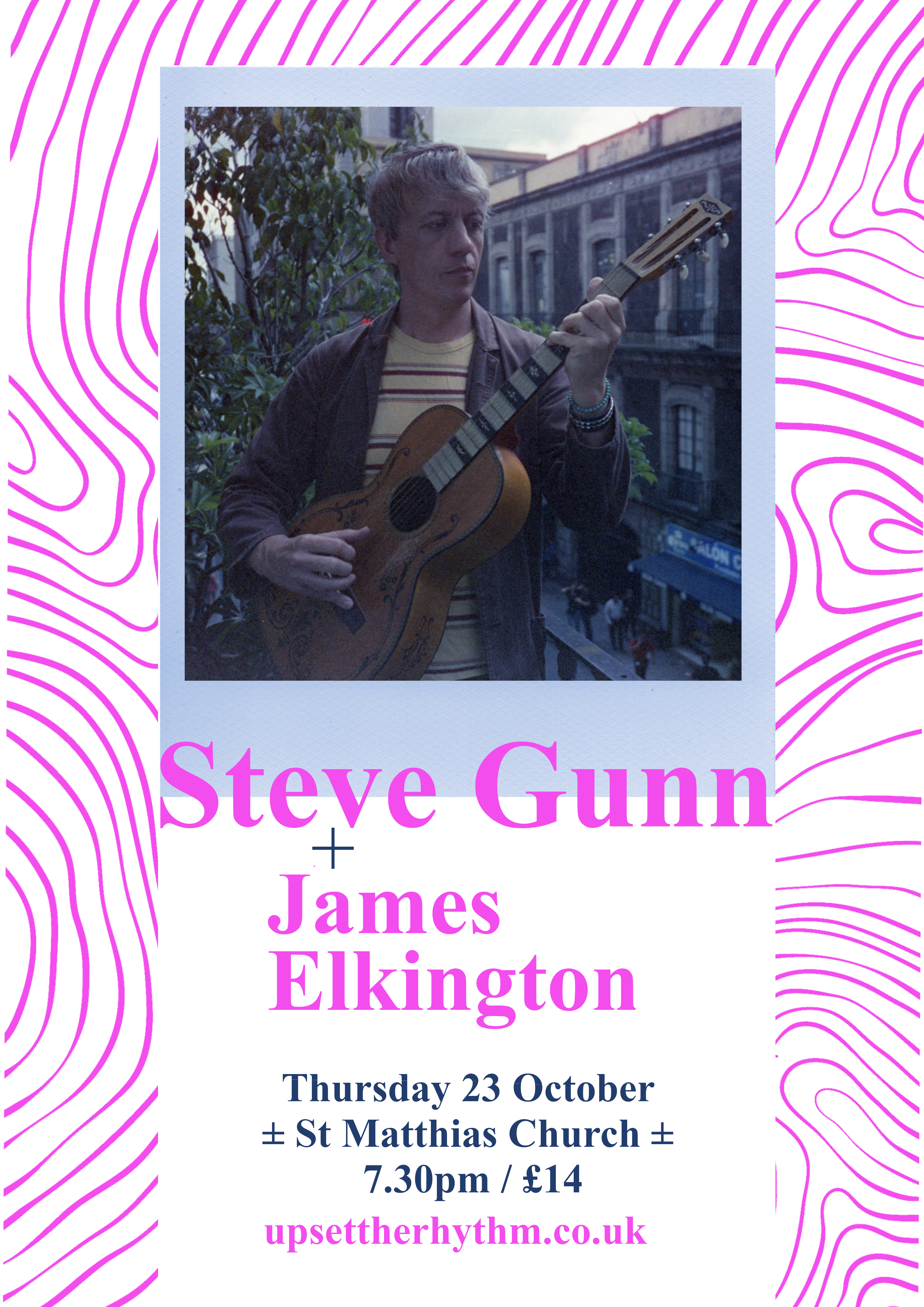 This coming Thursday sees Upset The Rhythm pitch up at St Matthias in Dalston for an extraordinary evening of quicksilver guitar droving and hazy songcraft  from Steve Gunn and James Elkington. Two sets, both top drawer, will be sublime. Steve and James have both released incredible albums this year, so we're in for a real treat.